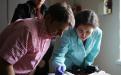 На фото: науковці Заповідника – пам'яткознавець, канд. іст. наук Аліна Варивода, зберігач колекції тканин Заповідника, канд. іст. наук Анна Титаренко та художник-реставратор вищої категорії Володимир Назар у процесі дослідження ікони.