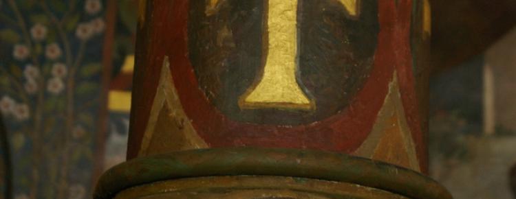 5. В інтер’єрі Трапезної палати при церкві Прпп. Антонія і Феодосія Печерських. Опорний стовп (деталь). Фото М. Борового, 2019 р.