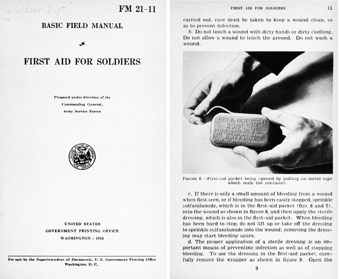 Іл. 6. Сторінки з видання про першу медичну допомогу для солдат (Вашингтон, 1943 р.)