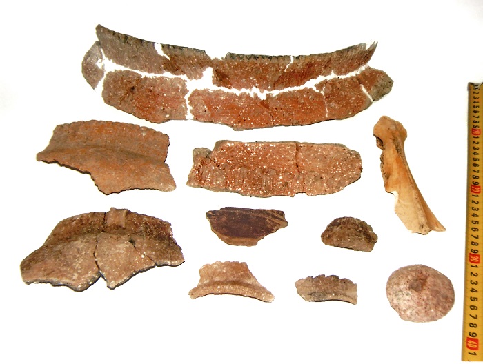 6. Фрагменти керамічного посуду, кістяне лощило трипільської культури. 1998 р.