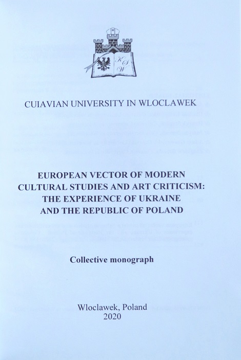 У Республіці Польща вийшла друком колективна монографія науковців з культурології та мистецтва: European vector of modern cultural studies and art criticism: the experience of Ukraine and the Republic of Poland: Collective monograph. Wloclawek: Cuiavian University, 2020.