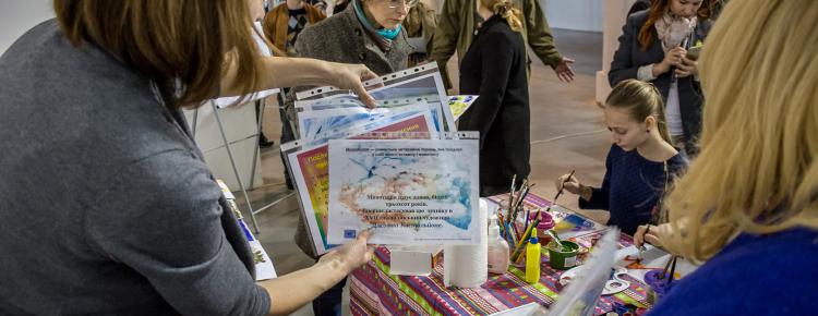Під час роботи першого дня фестивалю маленькі та дорослі гості мали змогу взяти участь у майстер-класі з малювання графіки «Монотипія на склі». Особливостям та тонкощам техніки відтворення візуального відвідувачів навчали співробітники Заповідника – Оксана Чобітько, Юлія Головатенко та Катерина Сорока.