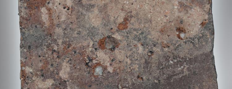 6. Фрагмент плінфи з торцевим знаком з Успенського собору, XI–ХІI ст. Можливо, це цифра системи грецького абеткового запису чисел “хі” – 600, яка може вказувати на партію чи порядковий номер цеглини.