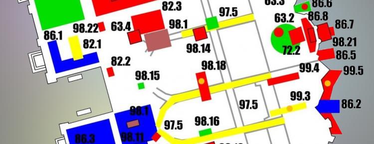 9. Фрагмент електронної Археологічної карти НКПІКЗ з зазначенням місць археологічних досліджень в площині Успенському собору.