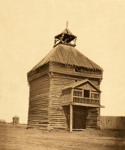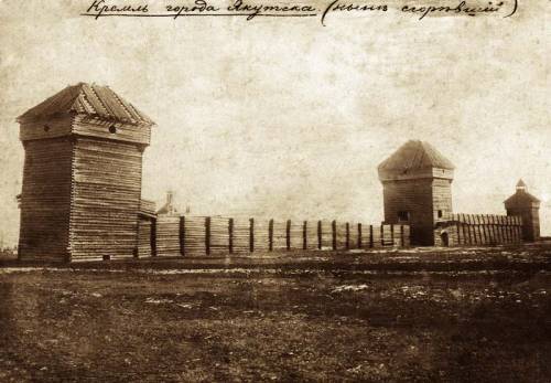1-2. Укріплення Якутського острога. Фото ХІХ ст. Один з небагатьох зразків збережених дерев’яних фортифікацій на зразок тих, які могли розбирати студенти в Києві.