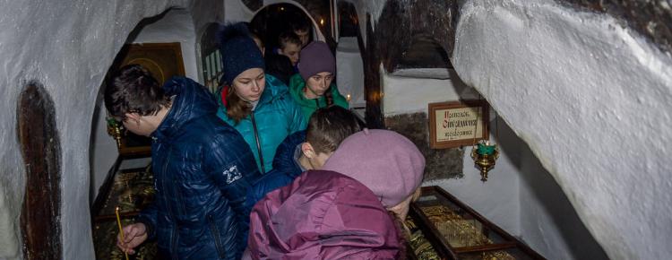 Подорож розпочалася з Оглядового майданчика, де гості стали учасниками короткого екскурсу в історію створення Ближніх і Дальніх печер Києво-Печерського монастиря. Далі учні відвідали Ближні печери – справжнє підземне «місто», де дорогу звично освітлює тендітна воскова свічка. Тут вдячні юні слухачі почули захоплюючу розповідь про життя, подвиги та особливості побуту видатних Печерських святих. Зокрема, про лікаря Агапіта, який врятував Володимира Мономаха, а також дізналися, про що можна попросити давньоруського богатиря Іллю Муромця.