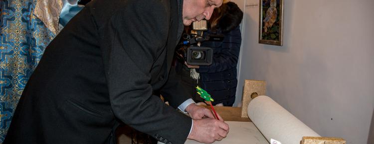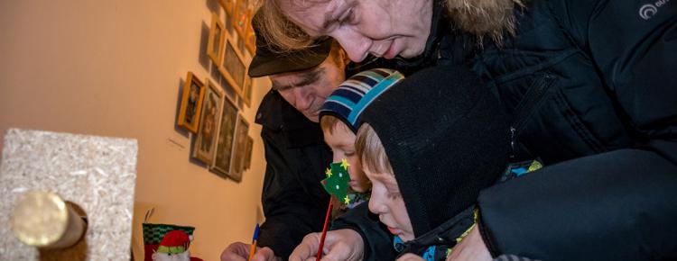 Начальник відділу музейно-освітньої роботи Заповідника Олег Топилко в образі Святого Миколая-Чудотворця разом з помічницею-співробітницею музейного комплексу Оленою Балабановою закликали гостей відвідати Альтанку бажань та долучитися до написання найдовшого листа Святому Миколаю. У листі діти-учасники акції бажали миру та злагоди на теренах країни.