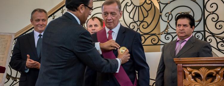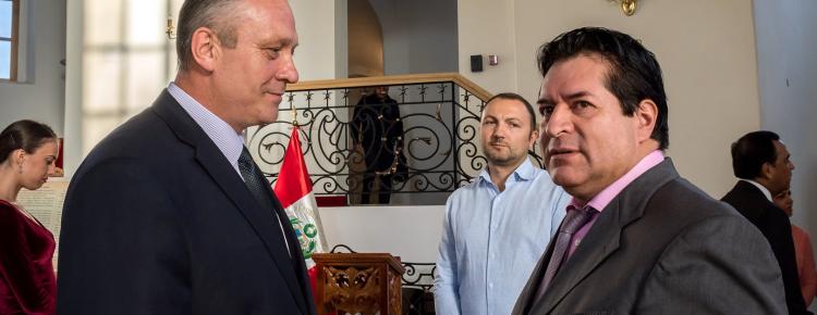 З нагоди свята, а також враховуючи особливі заслуги екс-посла України в Перу Олександра Михальчука у сфері налагодження та встановлення дипломатичних, економічних та культурних зв’язків між Україною та Перу, сприяння у відвідуванні країни українськими високопосадовцями та підприємцями, за впровадження діяльності, що сприяла б поширенню та визнанню культури Перу, беручи до уваги дружні відносини між двома країнами, пан Альберто Салас Бараона нагородив Олександра Михальчука вищою державною цивільною нагородою Перу – Орденом «Сонце Перу» 5-го ступеню «Великий Хрест» та висловив вдячність за гідну роботу від імені вищого керівництва Республіки Перу.
