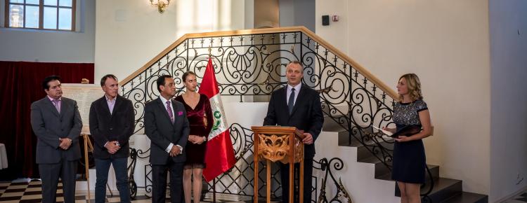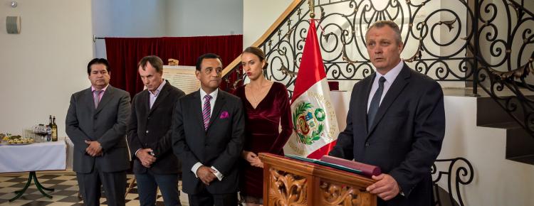 Надзвичайний та Повноважний Посол Республіки Перу в Україні пан Альберто Салас Бараона висловив вдячність присутнім гостям – представникам дипломатичного корпусу, українських Міністерств та освітніх установ, а також організаторам виставки за допомогу в реалізації важливого культурно-історичного проекту. Пан Посол відзначив важливість презентації експозиції саме у стінах унікальної Великої Лаврської дзвіниці та коротко ознайомив гостей з основною ідеєю культурно-історичного проекту, який має на меті популяризацію шедевру світової історіографії – перуанської хроніки історика Феліпе Гуаман Пома де Айала «Нова Хроніка та Добре Правління».