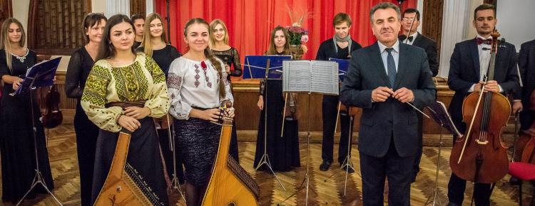 Святкову атмосферу підтримав концерт Камерного оркестру факультету мистецтв Національного педагогічного університету імені М. П. Драгоманова на чолі з художнім керівником – заслуженим діячем мистецтв, професором вишу Василем Федоришиним. Музиканти майстерно виконали мистецькі твори Мирослава Скорика, Дмитра Бортнянського, Антоніо Вівальді та інших авторів. Василь Федоришин коротко познайомив присутніх з основними віхами життя та творчості згаданих композиторів. Вокально окрасили захід виконавці Театру «Голос Вогню».