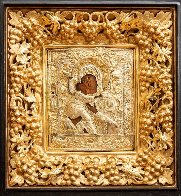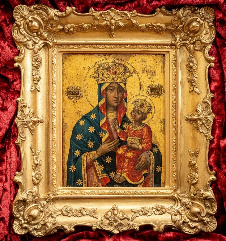 Вишгородська ікона Божої Матері, написана у 1650-1690 рр., має захопливу історію. Протягом тривалого часу вона перебувала в Італії, поки у 2016 році не була повернена до України. Її срібно-золоті шати виконані в стилі бароко-рококо й вирізняються високим художнім рівнем.