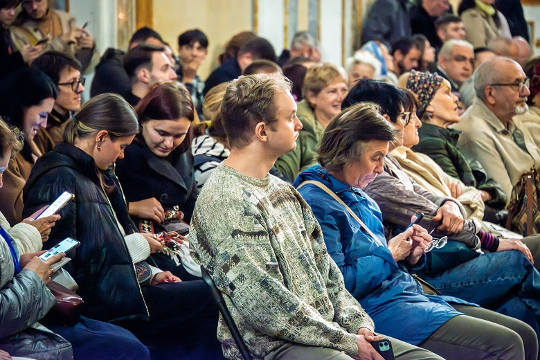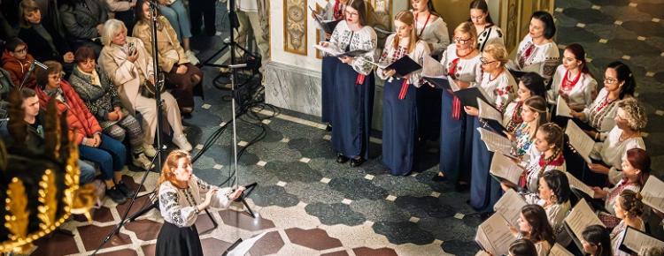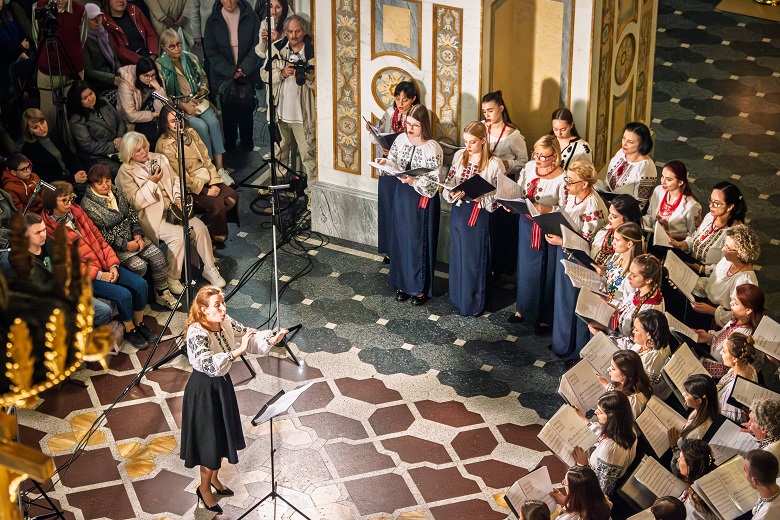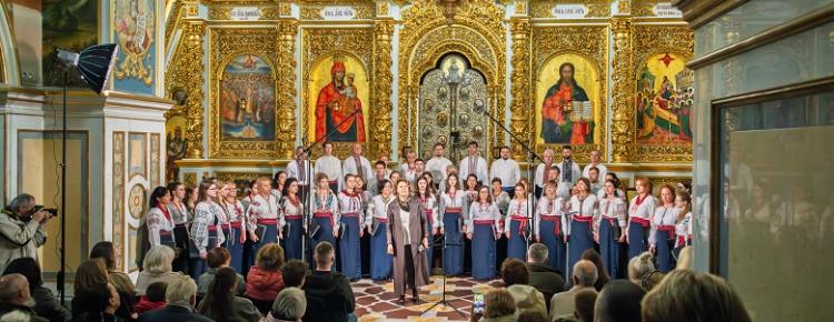 Під орудою диригентки Софії Трусенко хорова капела “Дніпро” Київського національного університету імені Тараса Шевченка виконала Другу літургію Олександра Кошиця – твір, що поєднує канонічний текст із багатоголосими хоральними розгортаннями.