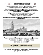 Анонс, 25 травня – 3 червня 2016: XIV Міжнародна наукова конференція «Церква – наука – суспільство: питання взаємодії»