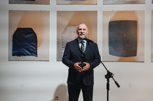 Основу експозиції становлять реальні артефакти війни — пошкоджені бронежилети та засоби захисту представлені як самодостатні об’єкти, що поєднують документальність і художнє переосмислення.