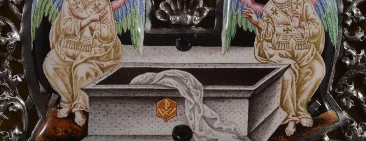 The exhibit has the original form, which reflects the influence of the West European church art and demonstrates the high level of mastership applied to jewellery and enamel.