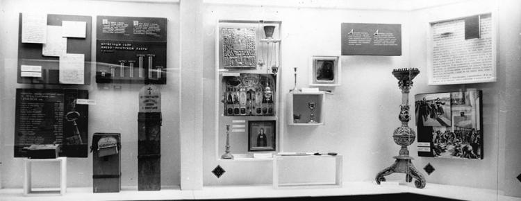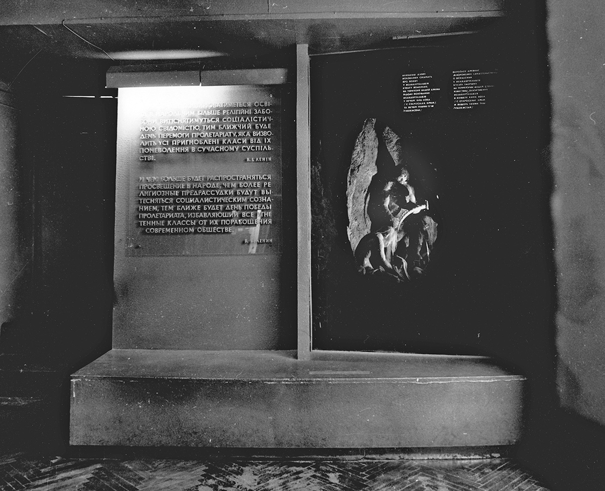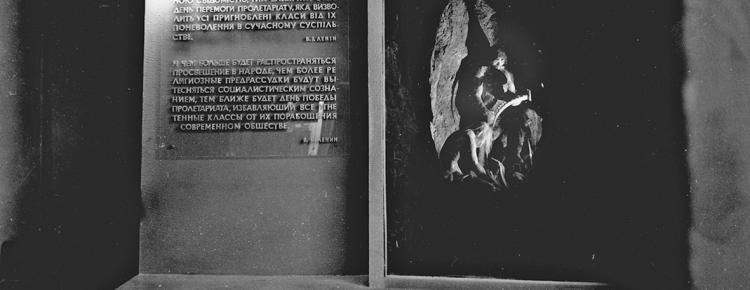 Даниною атеїстичній радянській пропаганді був стенд, присвячений використанню за царату монастирських приміщень як тюрем для утримання політичних в’язнів. Закінчувалася експозиція історією вивчення печер за радянської влади.