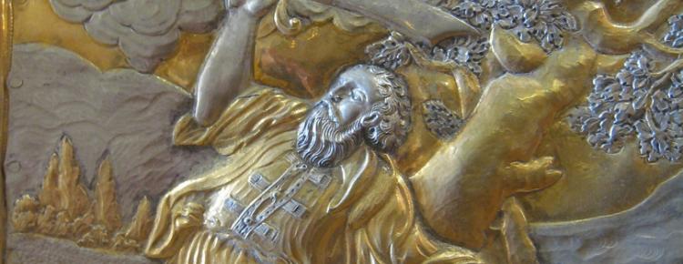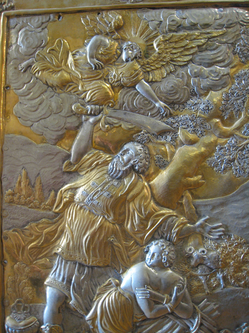 - Abraham’s sacrifice. Fragment of the main altar mounting of the Dormition Cathedral of the Kyiv-Pechersk Lavra. Kyiv-Pechersk Lavra National Preserve collection. KPL-M-1147.