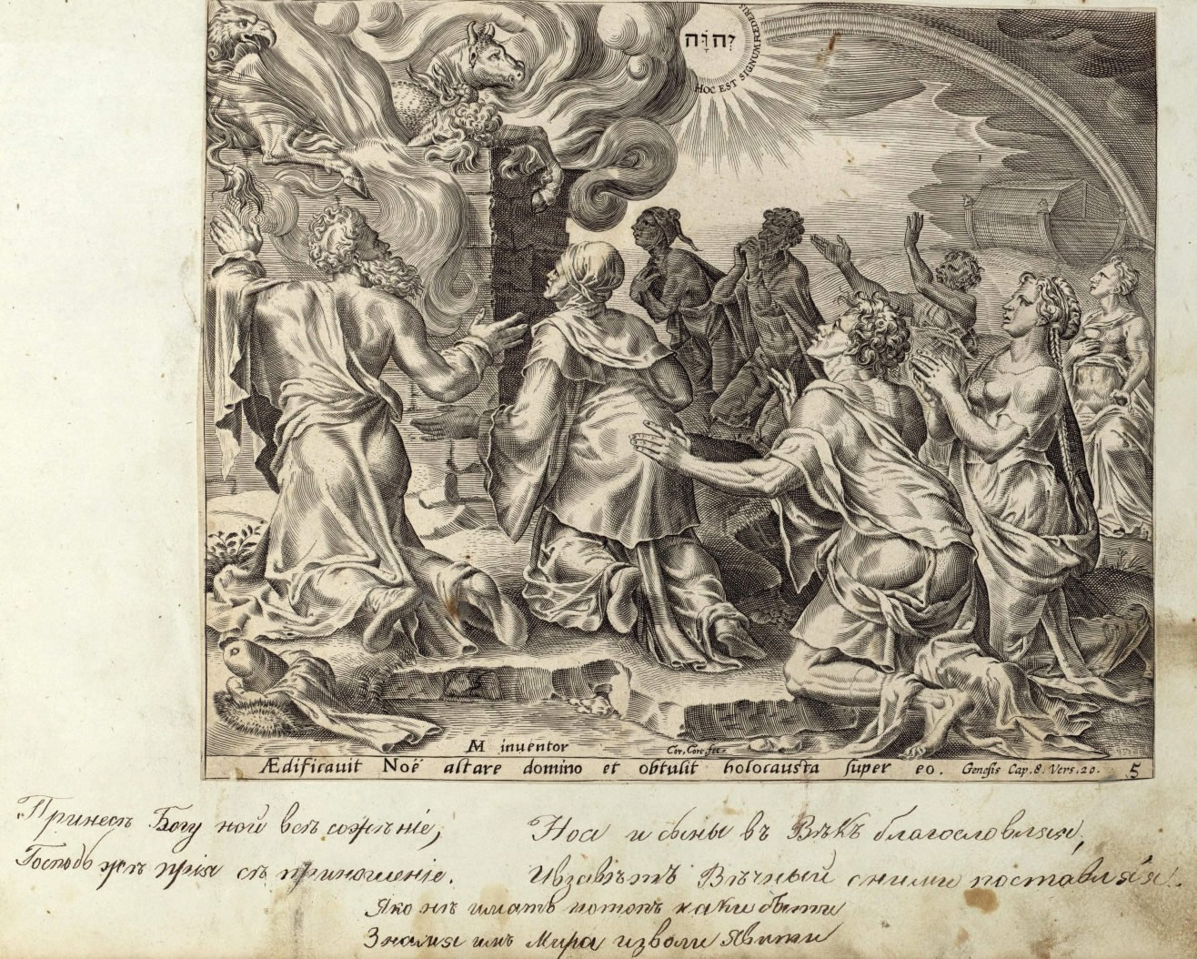 - Noah's Sacrifice. Engraving of the Piscator’s Bible. 1650