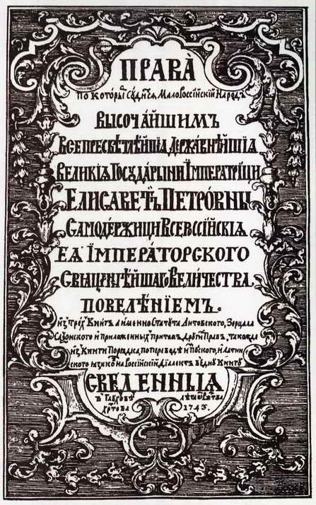 1. Cover page of the "Rights on which the people of Little Rus’ are judged". 1745