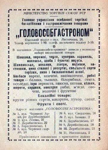 2. Рекламне оголошення магазинів «Головособгастроном» в Одесі. 1947 р.