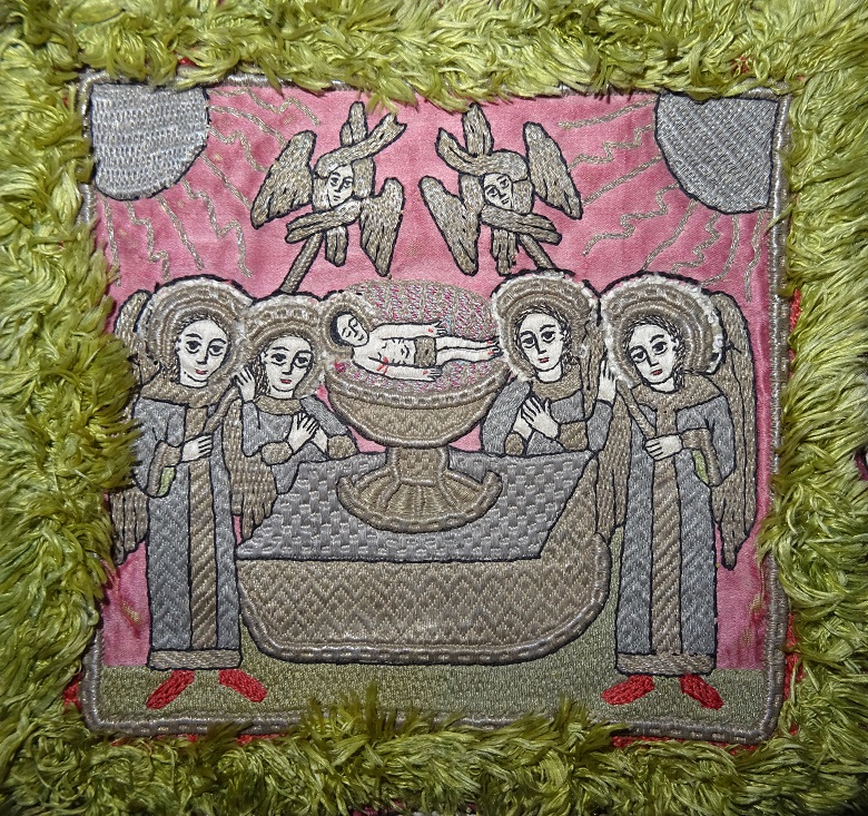 Іл. 3. Зображення архангел Михаїла і фрагмент вкладного напису на бічній частині покрівця