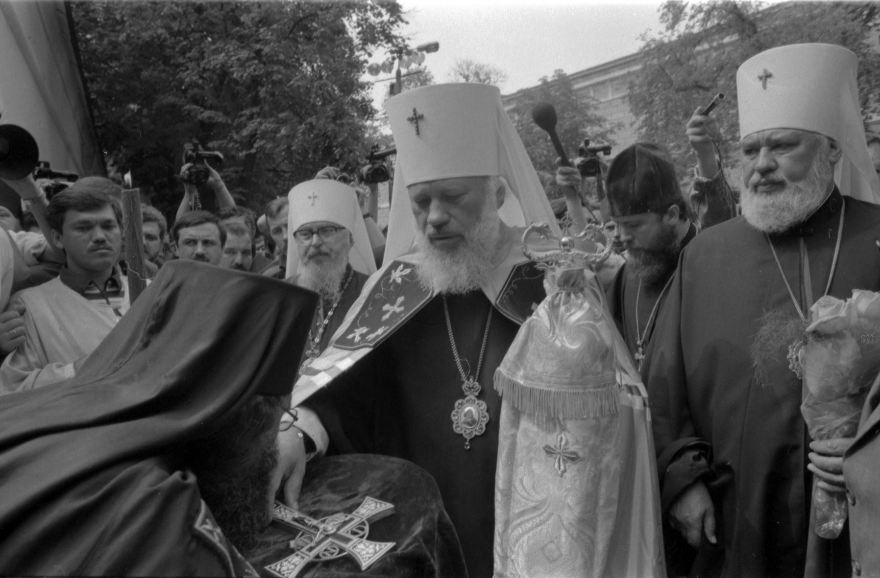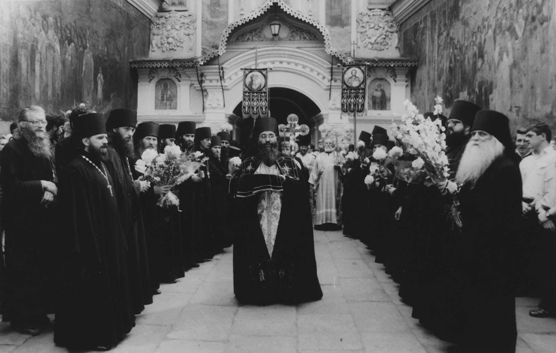 On June 20, 1992, the newly elected Primate of the Ukrainian Orthodox Church, His Beatitude Metropolitan Volodymyr (Sabodan) of Kyiv and All Ukraine, arrived at Kyiv-Pechersk Lavra. It became his main residence for the next 22 years. Metropolitan Volodymyr was solemnly greeted by representatives of the clergy and the faithful. A week later, on the night of June 26-27, the relics of the holy martyr Volodymyr (Bohoyavlensky), Metropolitan of Kyiv and Halych († 1918), were found in the Church of the Exaltation of the Holy Cross in the Near Caves and transferred to the Far Caves. Volodymyr was the first Orthodox bishop, who fell victim to the persecution of the Bilshovyk government that inhibited further growth of the church.
