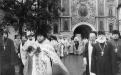 13. Metropolitan Volodymyr, surrounded by bishops and Lavra fraternity, approaches Cathedral Square