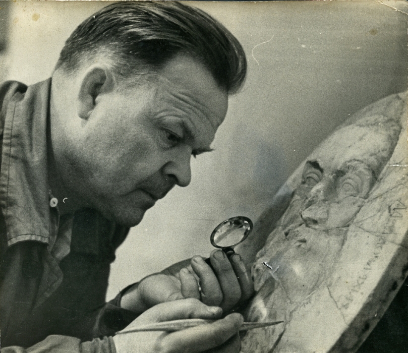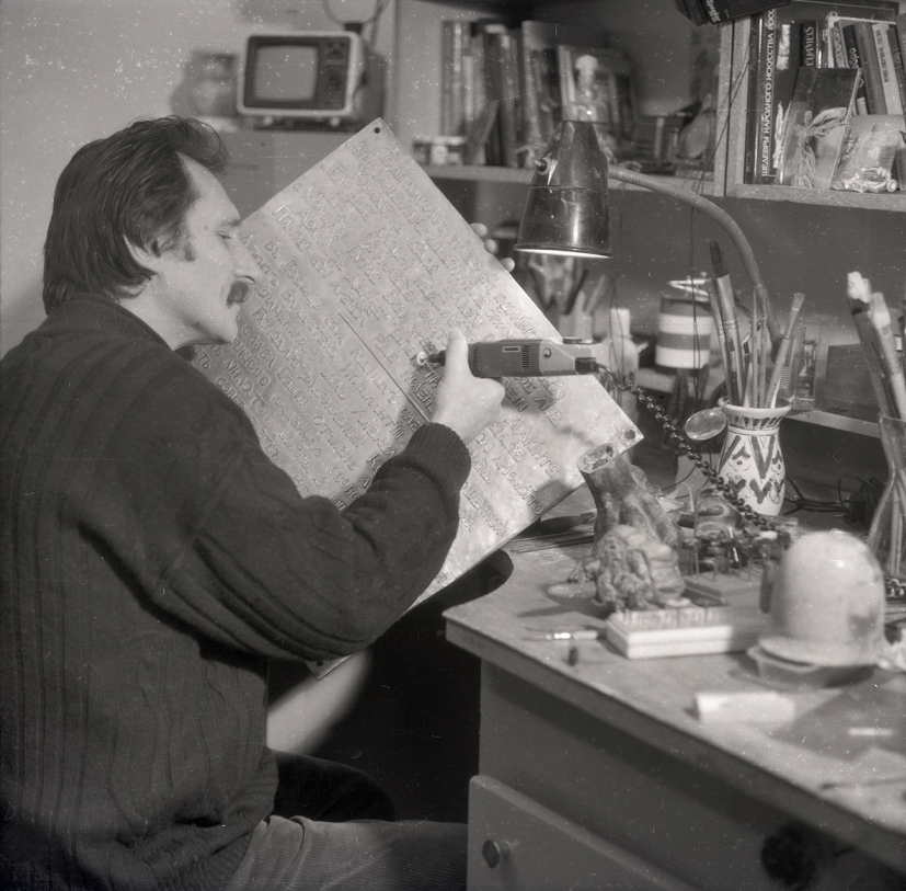 3. O. Sheptykov, restorer of the Preserve, working on the bas-relief of Costiantyn Ypsilantis. Photo by V. Berezovsky, 1965