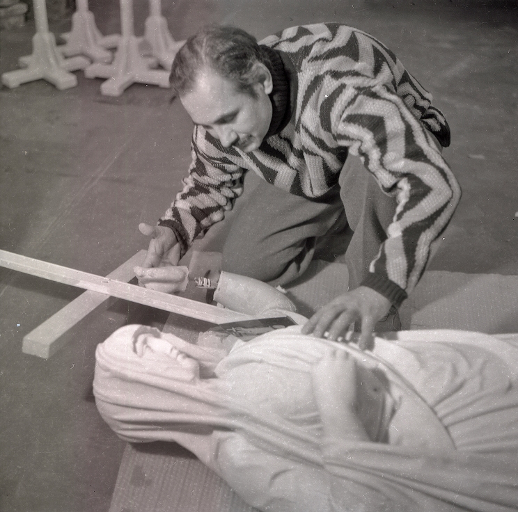 9. Restoration of the “Faith” sculpture of the monument to Prince Costiantyn Ypsilantis. Sculptor Vasyl Mikropulo models the configuration of the sculpture's hand and Cross, 1996 (inv. № KPL-N-8114)