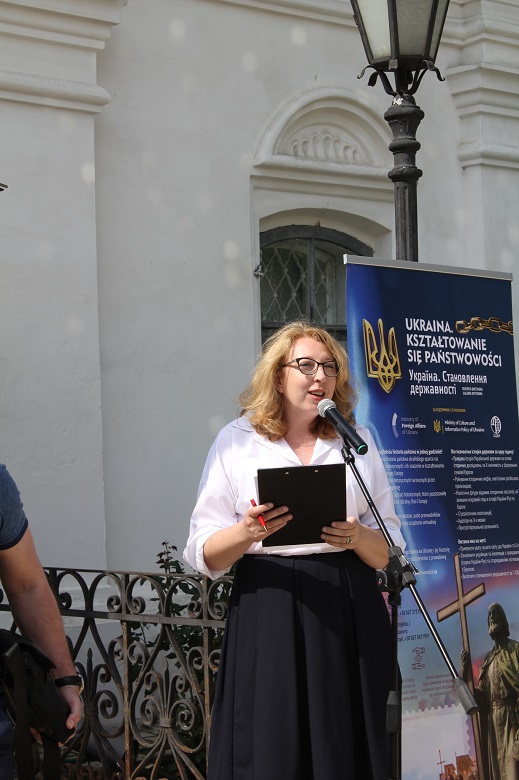 - інформаційні стенди, де відтворені атрибути Української держави від Середньовіччя до новітнього часу: печатки, міжнародні документи, гроші, прапори, герби, мапи.
