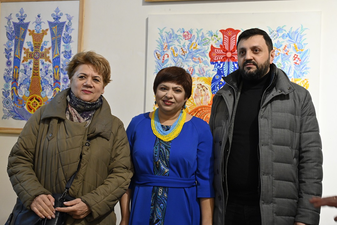 В експозиції представлені яскраві зразки багатогранної творчості художниці, зокрема Проєкту Open Art Academy, присвяченого петриківському розпису, що включає відповідно декоровані вірменські хачкари - камʼяні хрести, над якими майстриня працює з 2014 року.