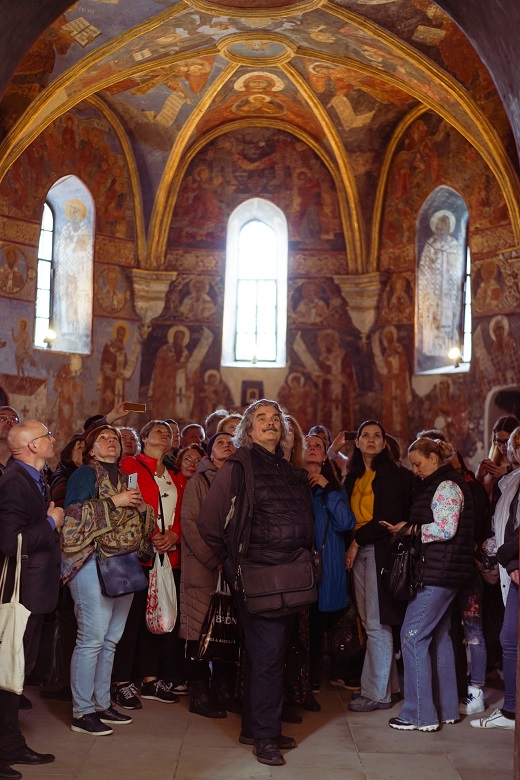 Наші гості на власні очі побачили, як неповторно поєднані у храмі чотири найдавніші архітектурні стилі. До слова, у збереженні церкви до наших часів велику роль відіграв київський митрополит Петро Могила, що у 1640-х роках взявся за відбудову храму.