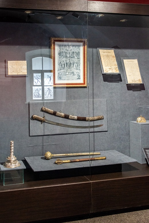 Не дивно, що цій реліквії відведене чільне місце в експозиції. Вона представлена поруч з легендарною шаблею Івана Мазепи та дипломатичним клинком хана Сагіб Ґерея.