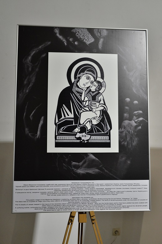 На виставці, що розташувалася на першому ярусі Великої лаврської дзвіниці, представлені п’ять графічних творів у стилі модерн: “Мадонна Голодомору 33”, “Чорнобильська Мадонна”, “Помаранчева Мадонна”, “Мадонна Небесної сотні” та “Мадонна 2022”. Кожна робота поєднує символіку трагедій і перемог України, нагадуючи про незламність нації.